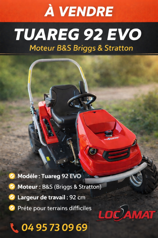 Puissante, fiable et parfaitement adaptée aux terrains difficiles, la Tuareg 92 EVO est la solution idéale pour un travail efficace et sans compromis.